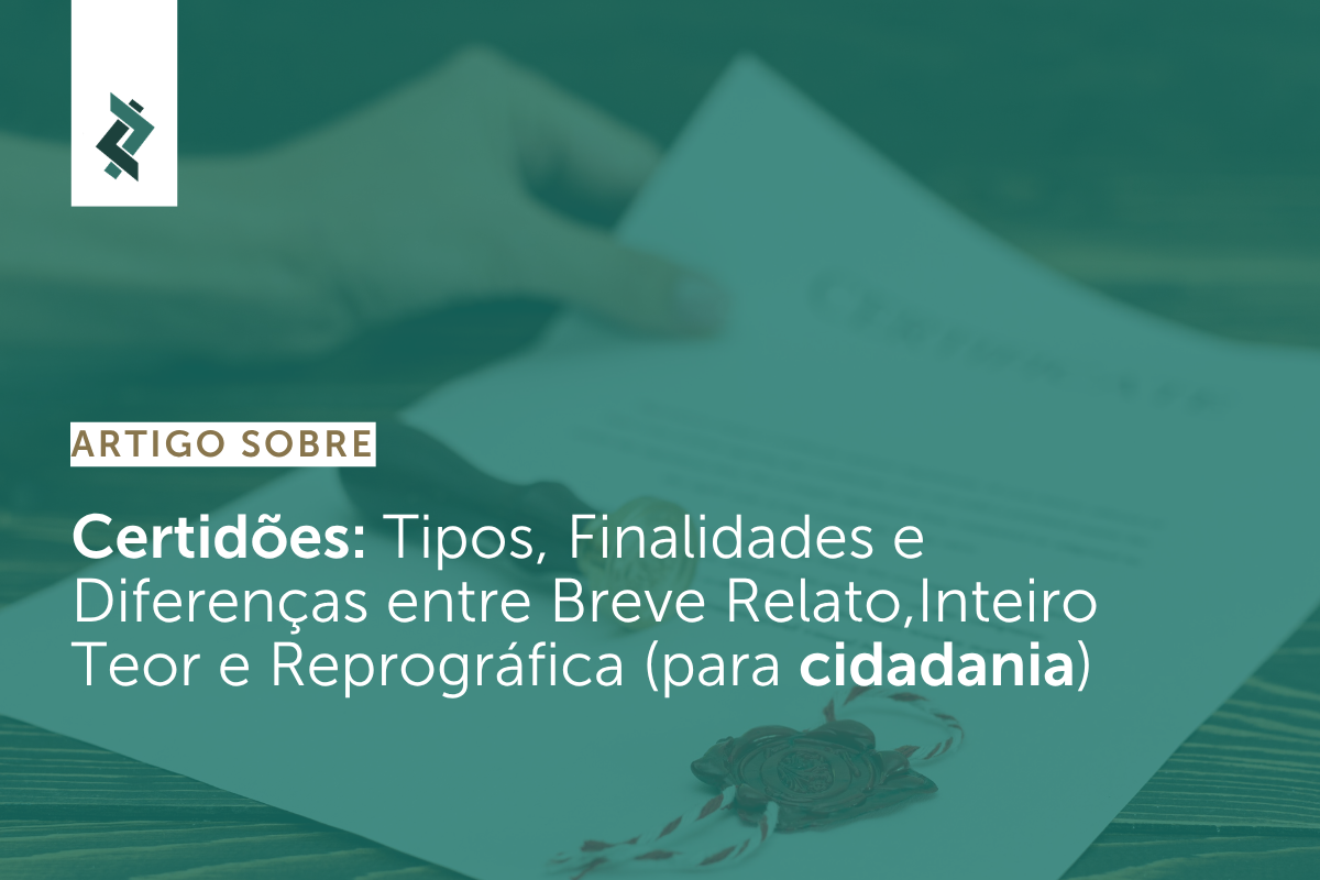 A correta compreensão dos tipos de certidões e de suas finalidades é um passo fundamental para quem pretende iniciar ou dar continuidade a um processo de cidadania. Embora a certidão em breve relato seja suficiente para muitas situações do cotidiano, os procedimentos de reconhecimento de nacionalidade exigem maior nível de detalhamento documental, tornando indispensável a apresentação de certidões em inteiro teor ou em cópia reprográfica.